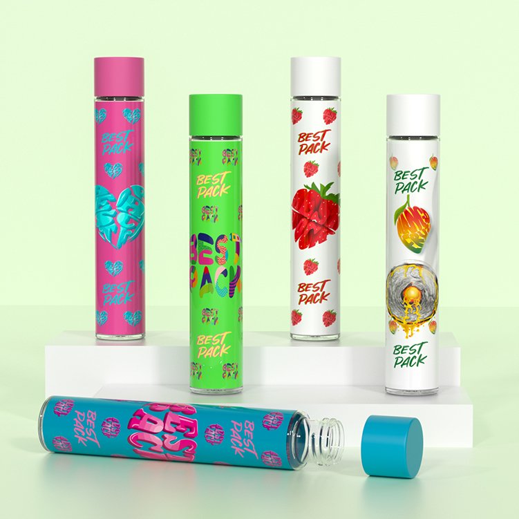 The Pre Roll Blunt Tube features a durable glass body paired with a Child-Resistant (CR) locking lid, providing premium protection for blunts and oversized pre-rolls. The clear or tinted glass offers a high-end look while preserving freshness, aroma, and structure. Its airtight CR cap prevents odor leakage and meets compliance requirements for regulated markets. Ideal for luxury cannabis brands seeking secure, reusable, and customizable packaging.
